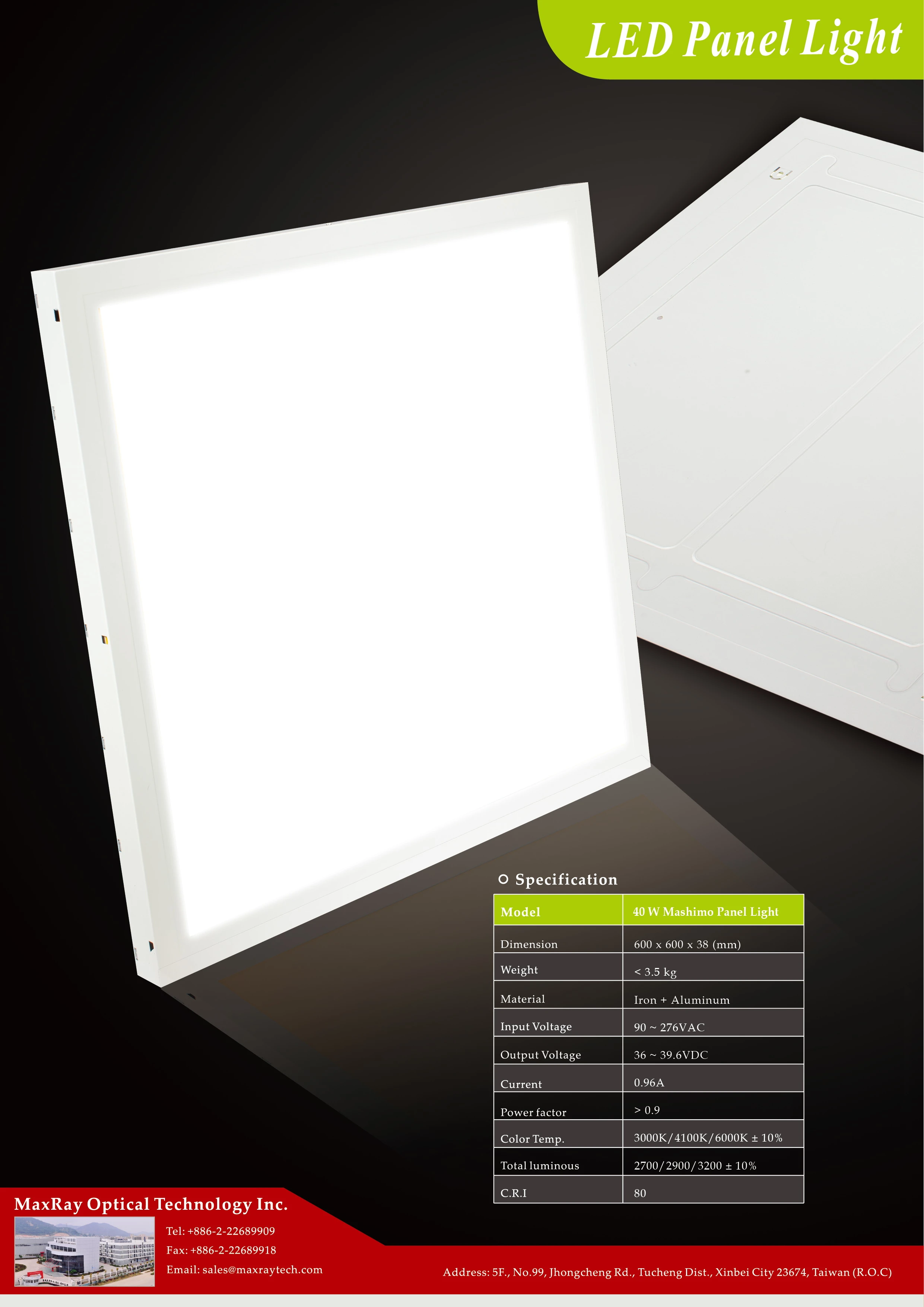 及均光表現之平板燈系列燈具, 薄型化及美觀造型深獲好評. Maxraytech T-BAR系列為平面出光, 有別於一般多點光源